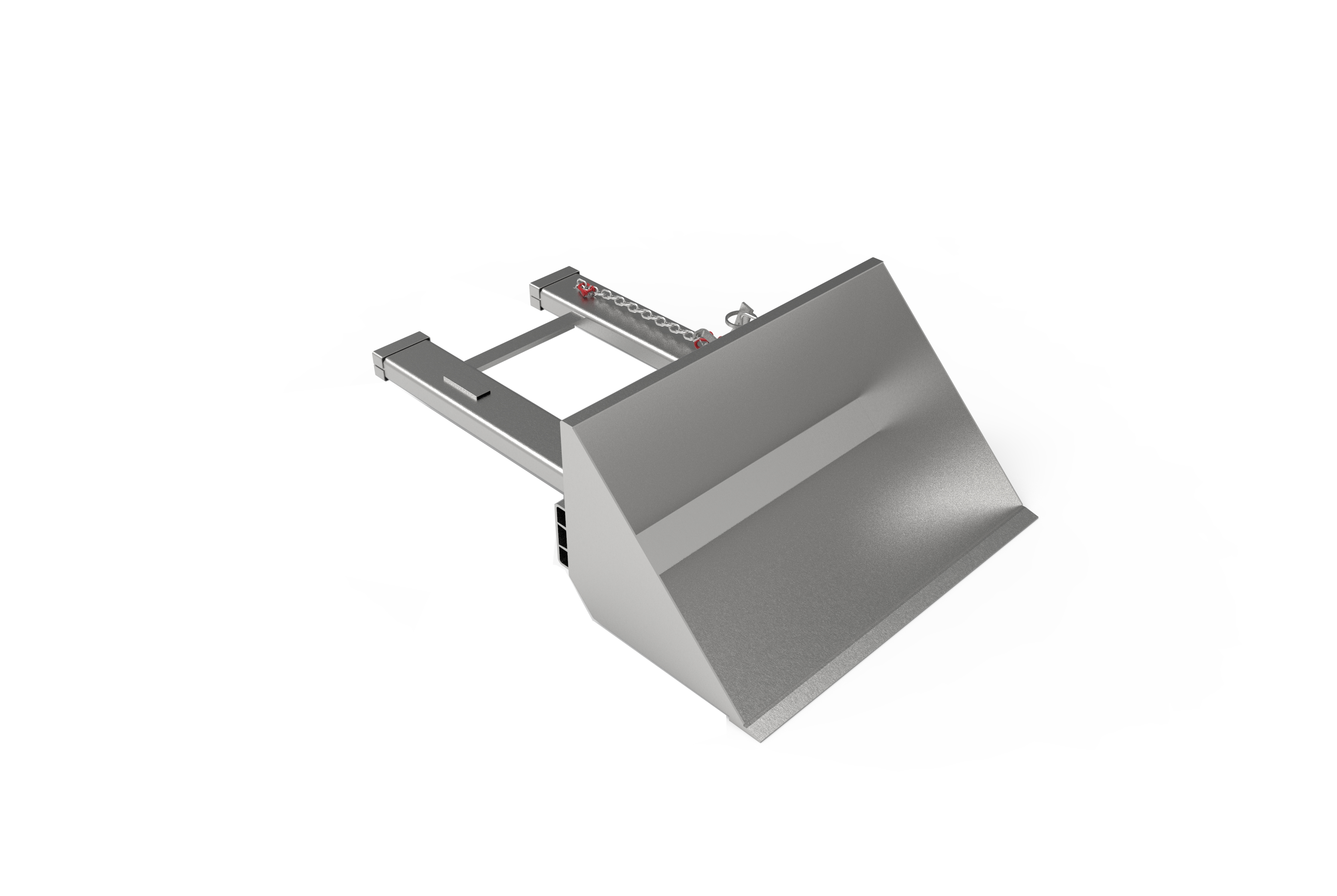 A slip on hydraulically operated bucket which quickly connects to the forklift.