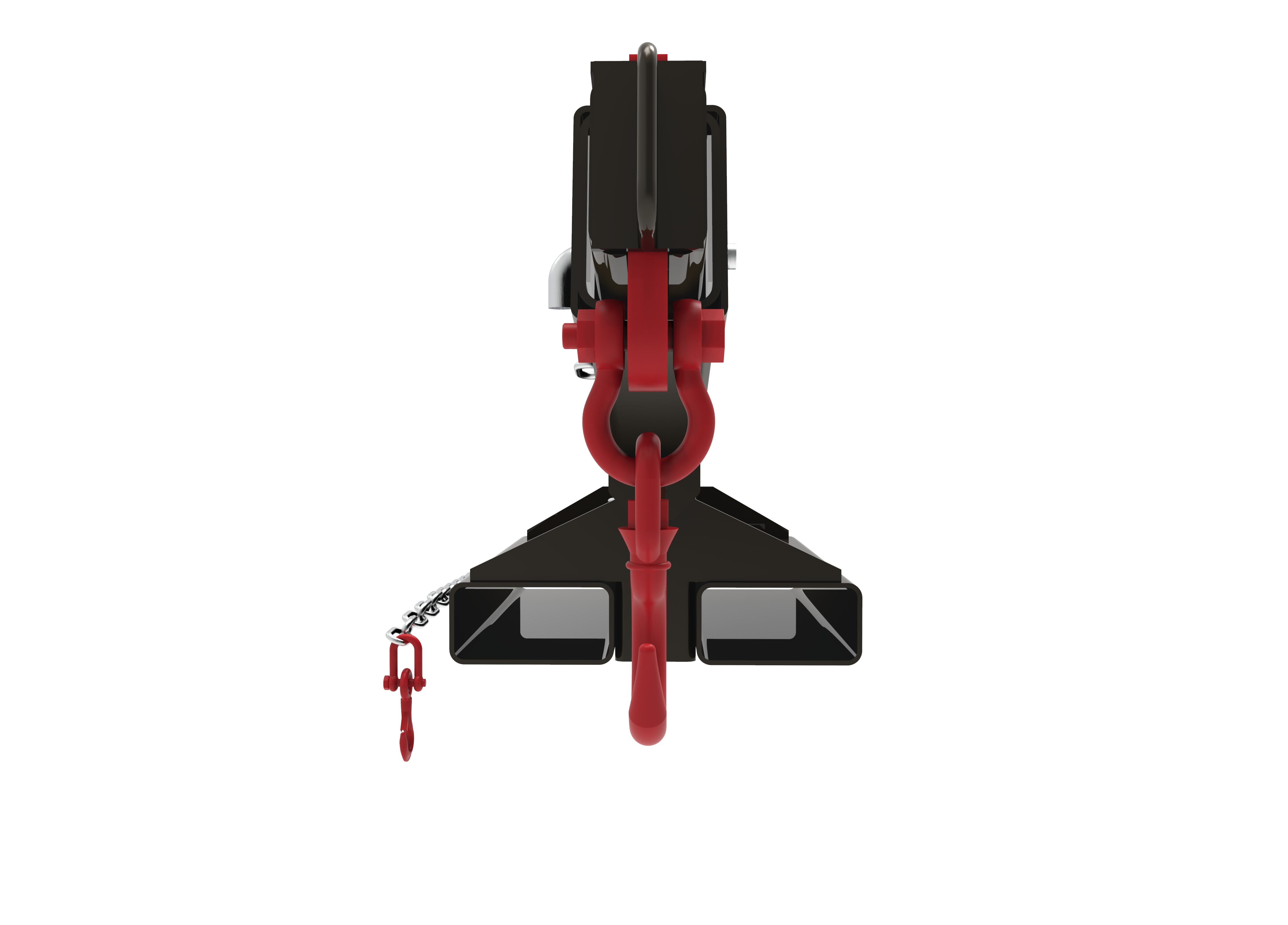 - This slip-on Forklift attachment is held to the Forklift by a safety chain.