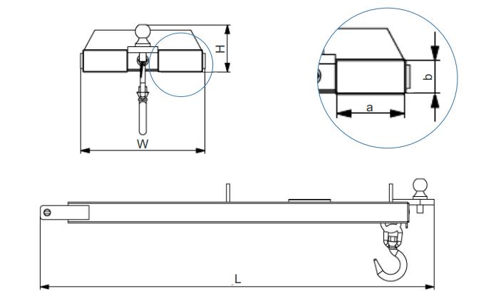 Galvanizing or As RequestThe type F-FST200 Forklift Slip-on Hook Jib has been designed as a simple Slip-on Jib attachment with 2 hook positions 585mm apart and a diameter 50 Tow Ball fitted at the front of the Jib.