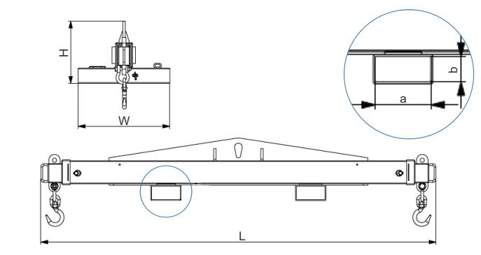 - The Spreader Beam load connection points are adjustable to 3 positions by moving the extendable arms each end.