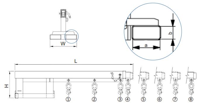The type F-FJL2.5 Fixed Long Jib has a 3.5 metre extension which allows for long reach lifts.