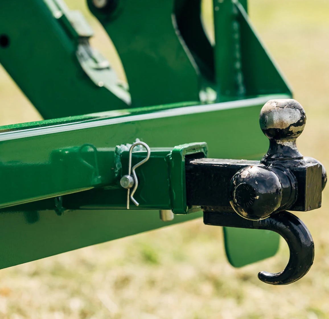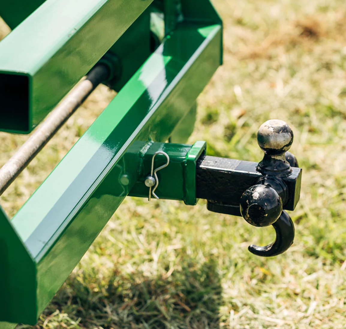It allows you to tow trailers and other implements without straining your machine's power or lift capacity. Designed for tractor front loaders with a hook and pin connection, this mount enables easy movement of various items such as lumber, leaves, and debris.