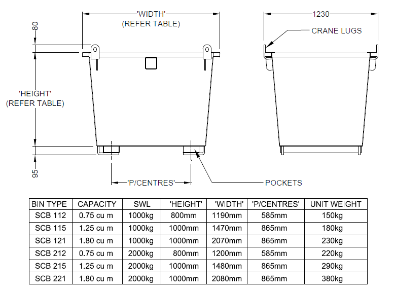 - Available in 1 tonne capacity made from 3mm plate or 2 tonne capacity made from 5mm plate.