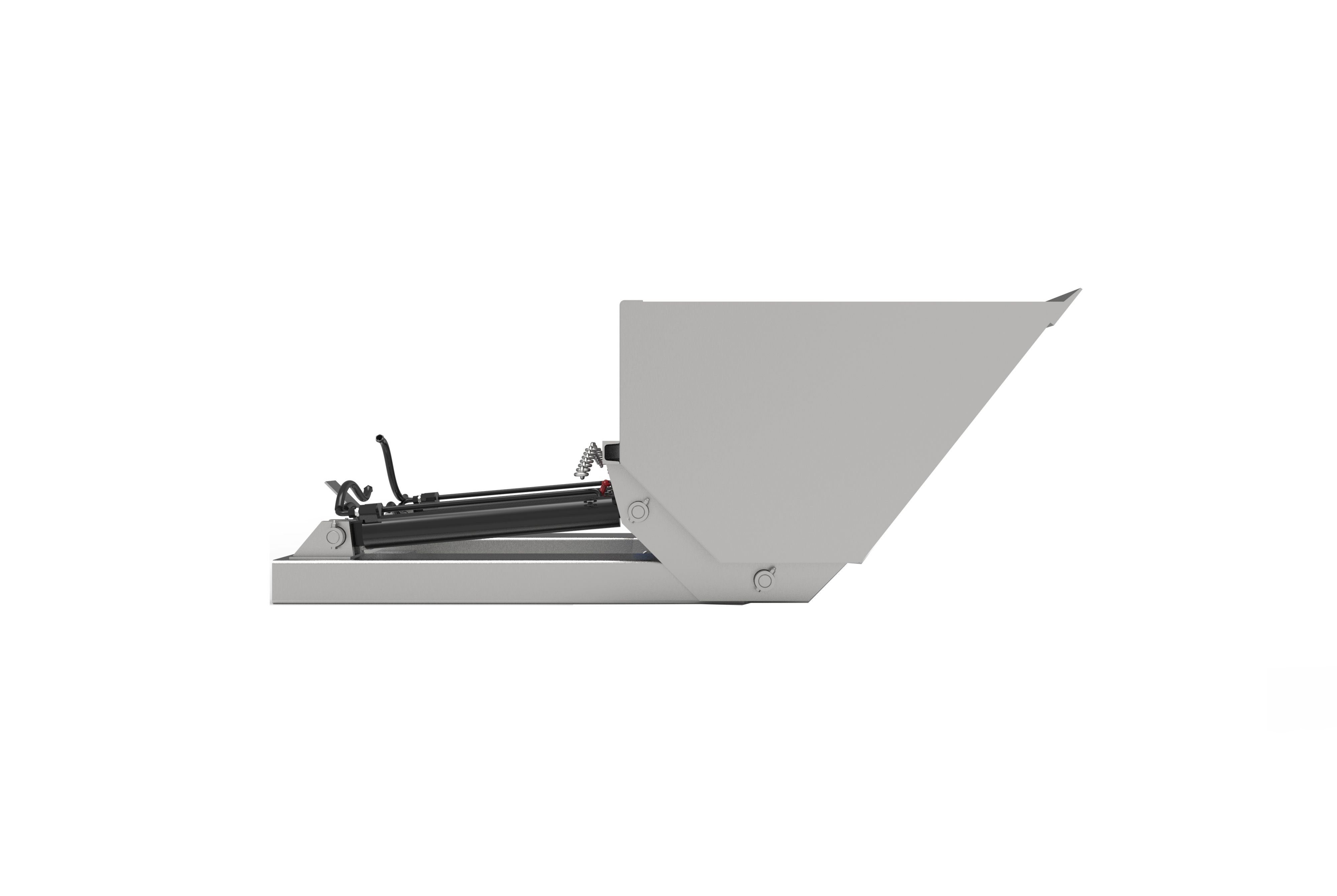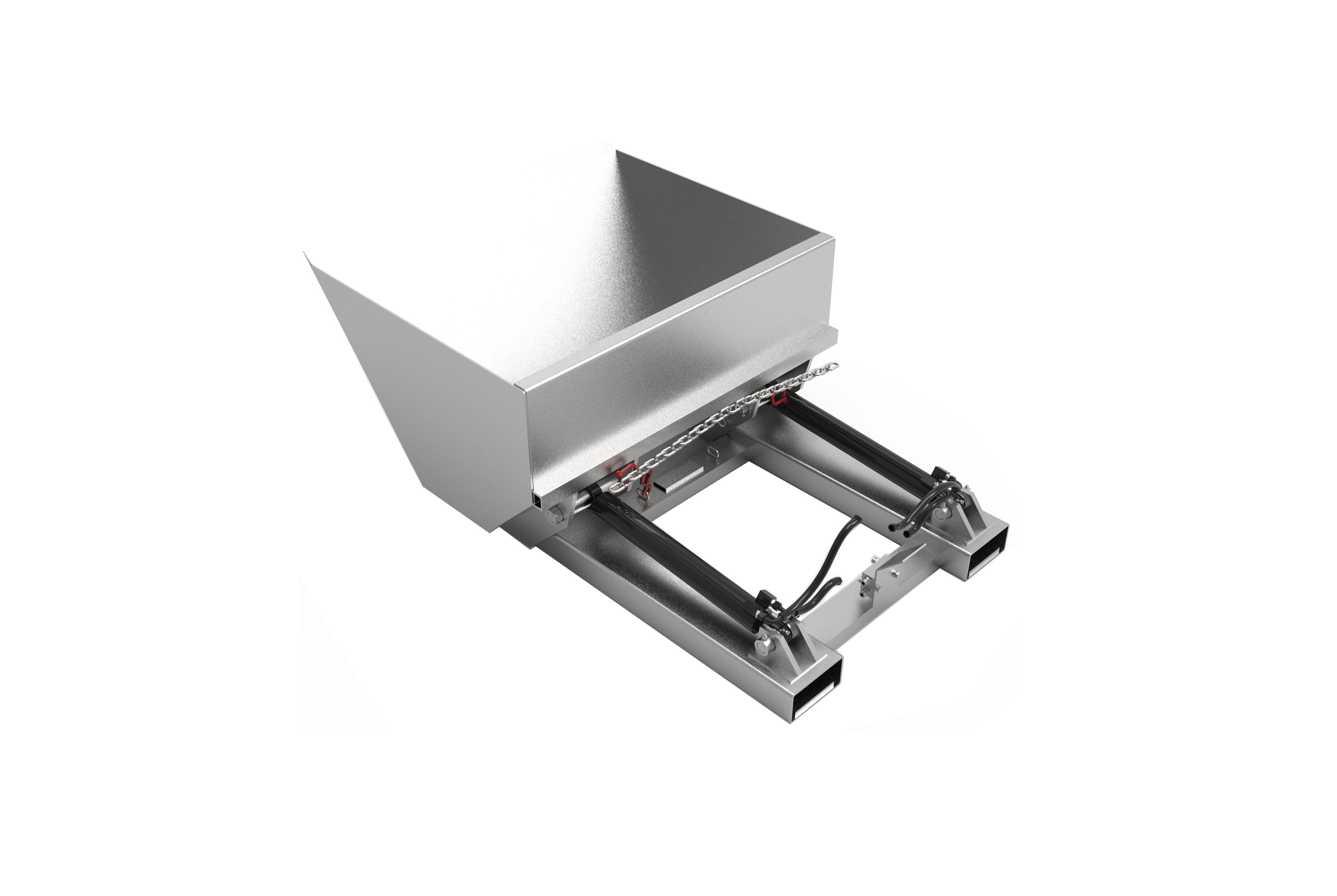 A slip on hydraulically operated bucket which quickly connects to the forklift.