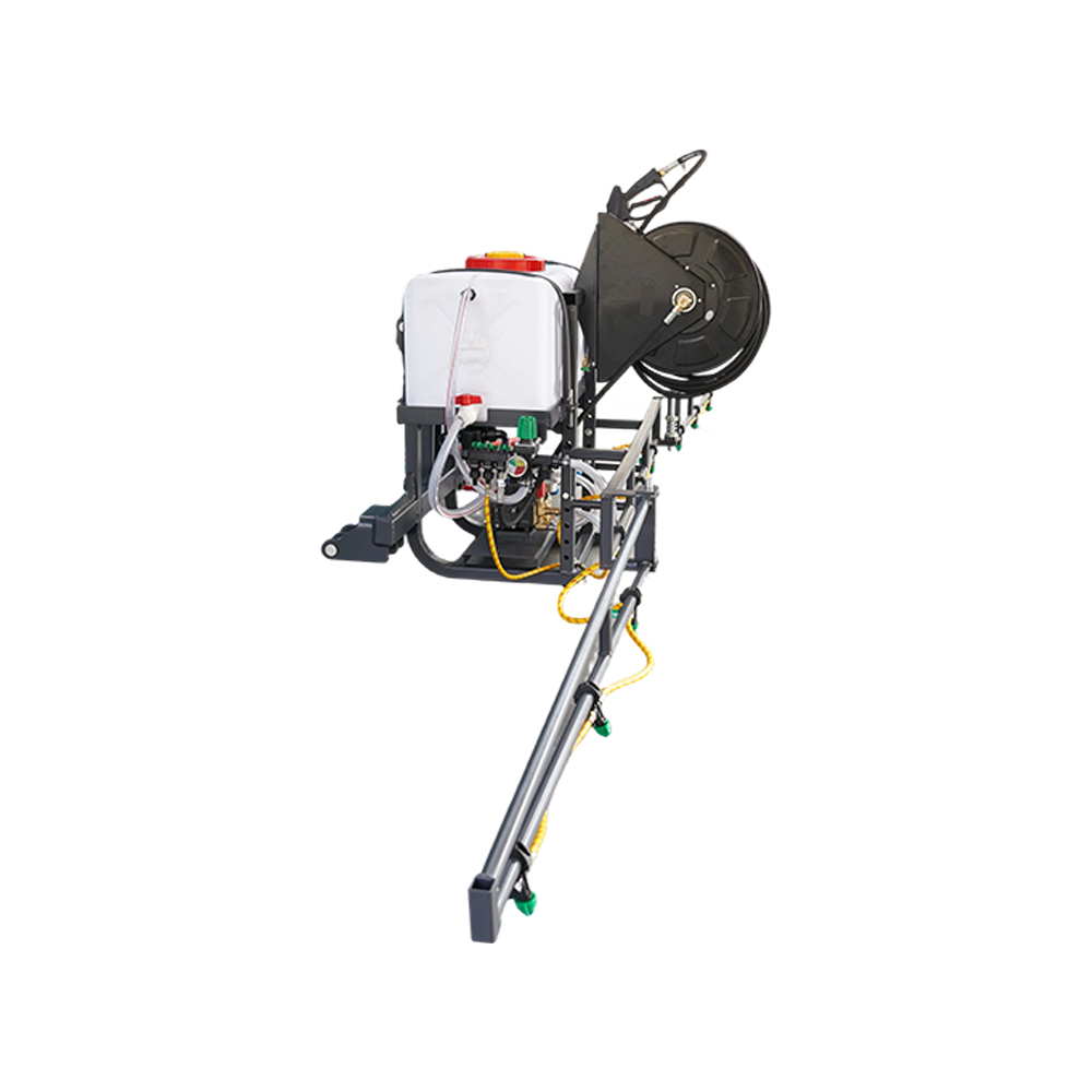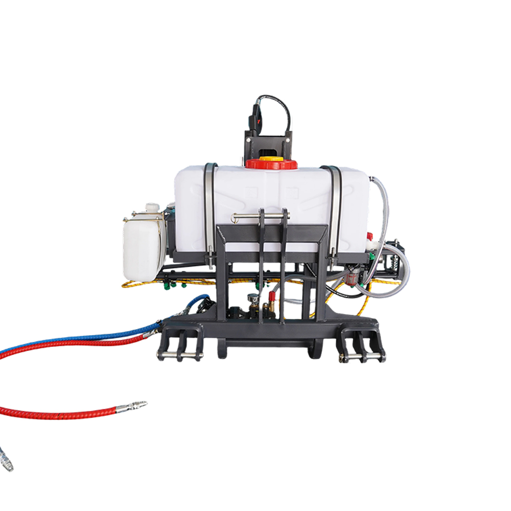 The hydraulically powered sprayer is the proper attachment for the fast and efficient application of landscaping chemicals.